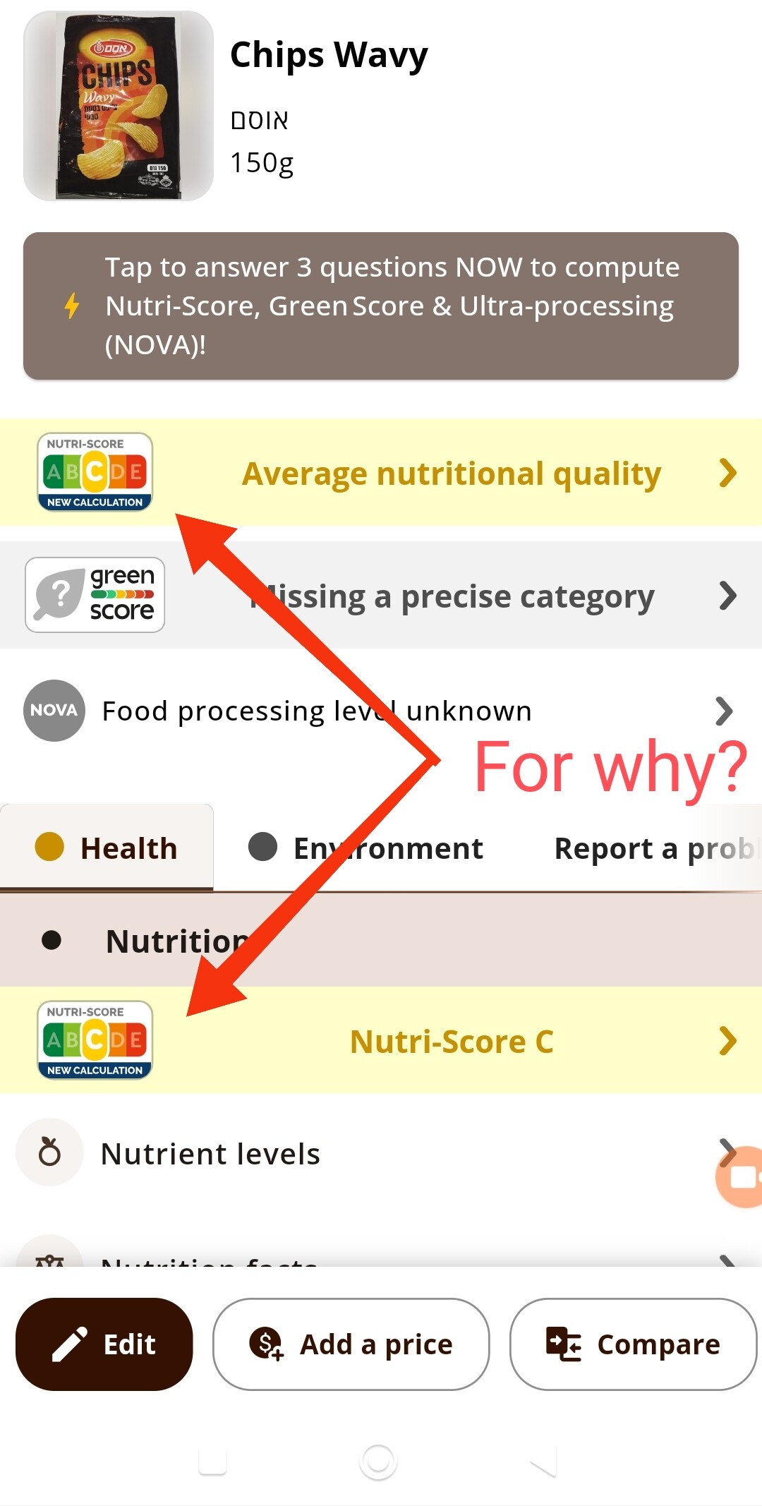 OFF mobile app have two Nutri-Scores on every product page. What is the reason for this behavior? Both go to the same page with the same content, so it is just an annoying duplicate, that takes free space and is one of the reasons, why the interface is so over complicated and overloaded in my perception (it already has too many big buttons on the same page).