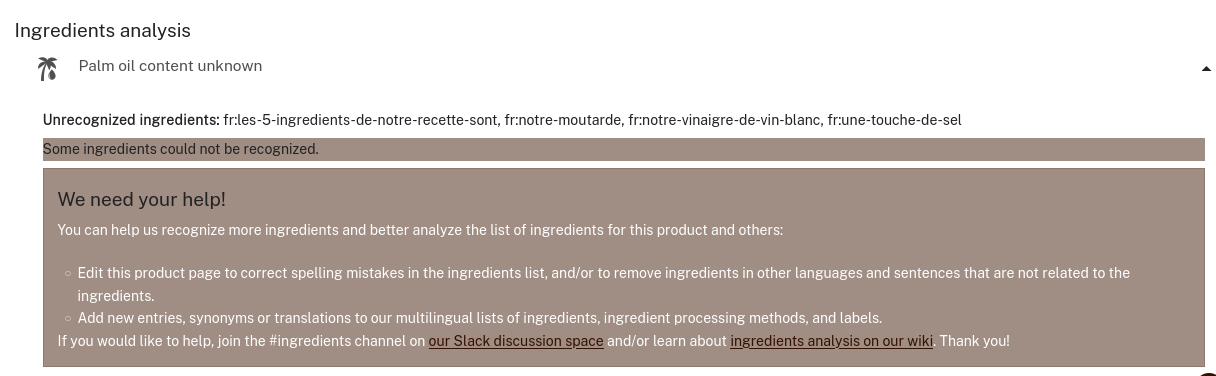 This product has unrecognized ingredients but I cannot update them from the Android app. It seems the manufacturer input them directly.